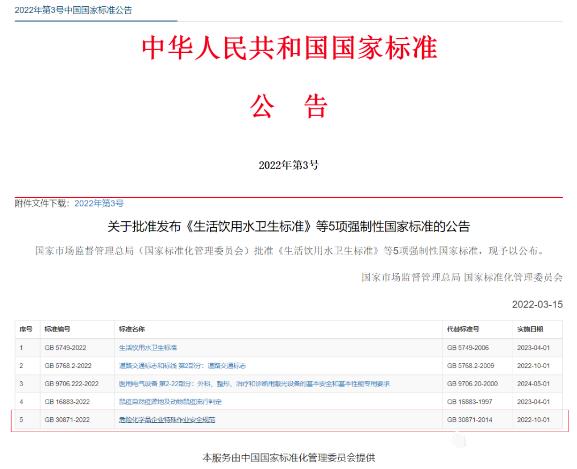 關(guān)于批準(zhǔn)發(fā)布GB30871-2022 《危險化學(xué)品企業(yè)特殊作業(yè)安全規(guī)范》強制性國家標(biāo)準(zhǔn)的公告