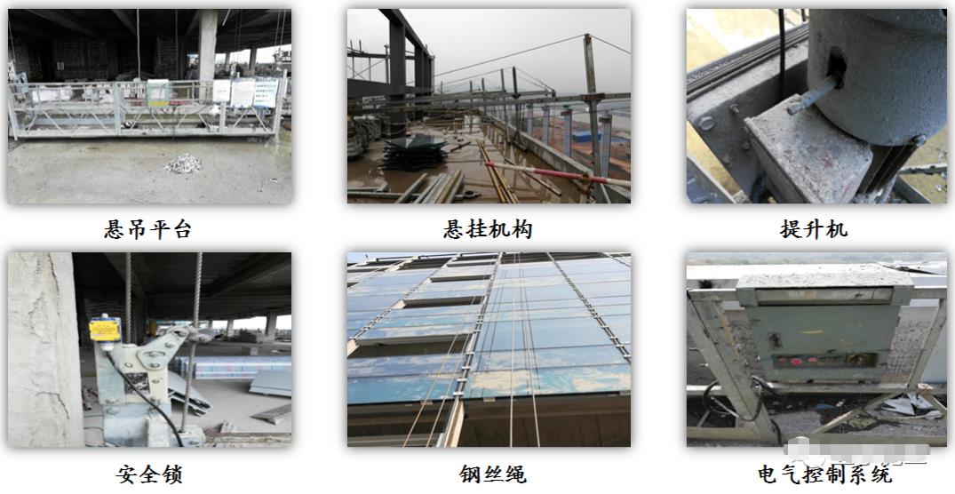 2、高處作業(yè)吊籃構(gòu)造 懸吊平臺(tái)、懸掛機(jī)構(gòu)、提升機(jī)、安全鎖、鋼絲繩、電氣控制系統(tǒng)六部分組成。