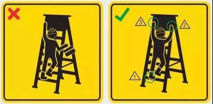 6、使用梯子時(shí),必須維持三個(gè)接觸點(diǎn)的攀爬法。