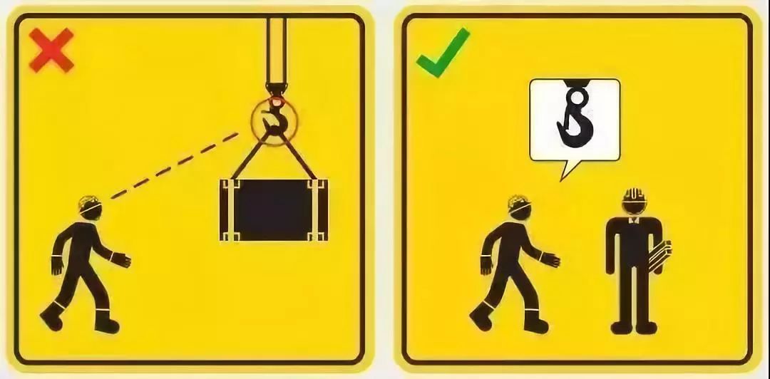 禁止從吊物下穿行 直接在吊物下工作或者步行是不安全的,因?yàn)榈跷锟赡軙?huì)砸向你。 吊物是指一個(gè)臨時(shí)被吊起,懸在空中的物體(該規(guī)則不適用于鉆臺(tái))。 你應(yīng)該: • 沒(méi)有授權(quán),決不闖入為吊物設(shè)置的禁區(qū)。 • 遵守起重指揮或作業(yè)負(fù)責(zé)人的指令。 如果你是起重作業(yè)的負(fù)責(zé)人,你應(yīng)該: • 對(duì)不安全區(qū)域做出標(biāo)記并設(shè)置禁區(qū)。 • 確保任何人不得從吊物下穿行。